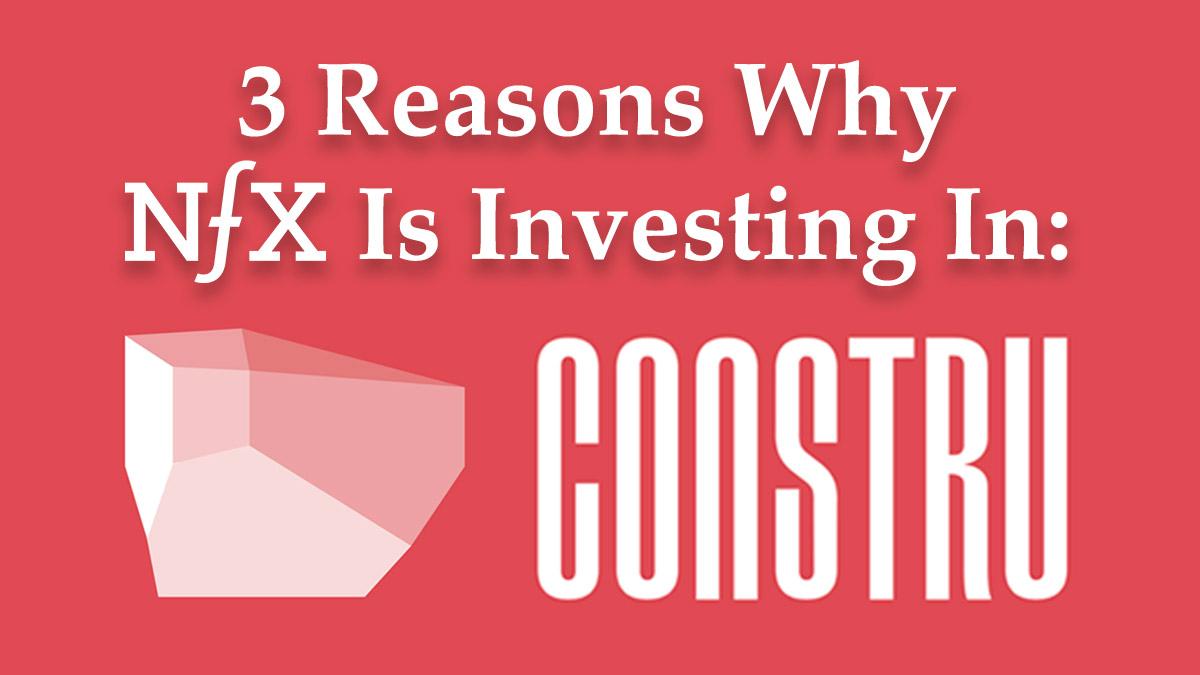 Today, NFX is proud to announce our seed investment in Constru. Constru brings the power of AI to construction to help address the problem of inefficiency by providing real-estate developers, construction project managers, and financial institutions with machine-vision-based ongoing site-inspection and monitoring.