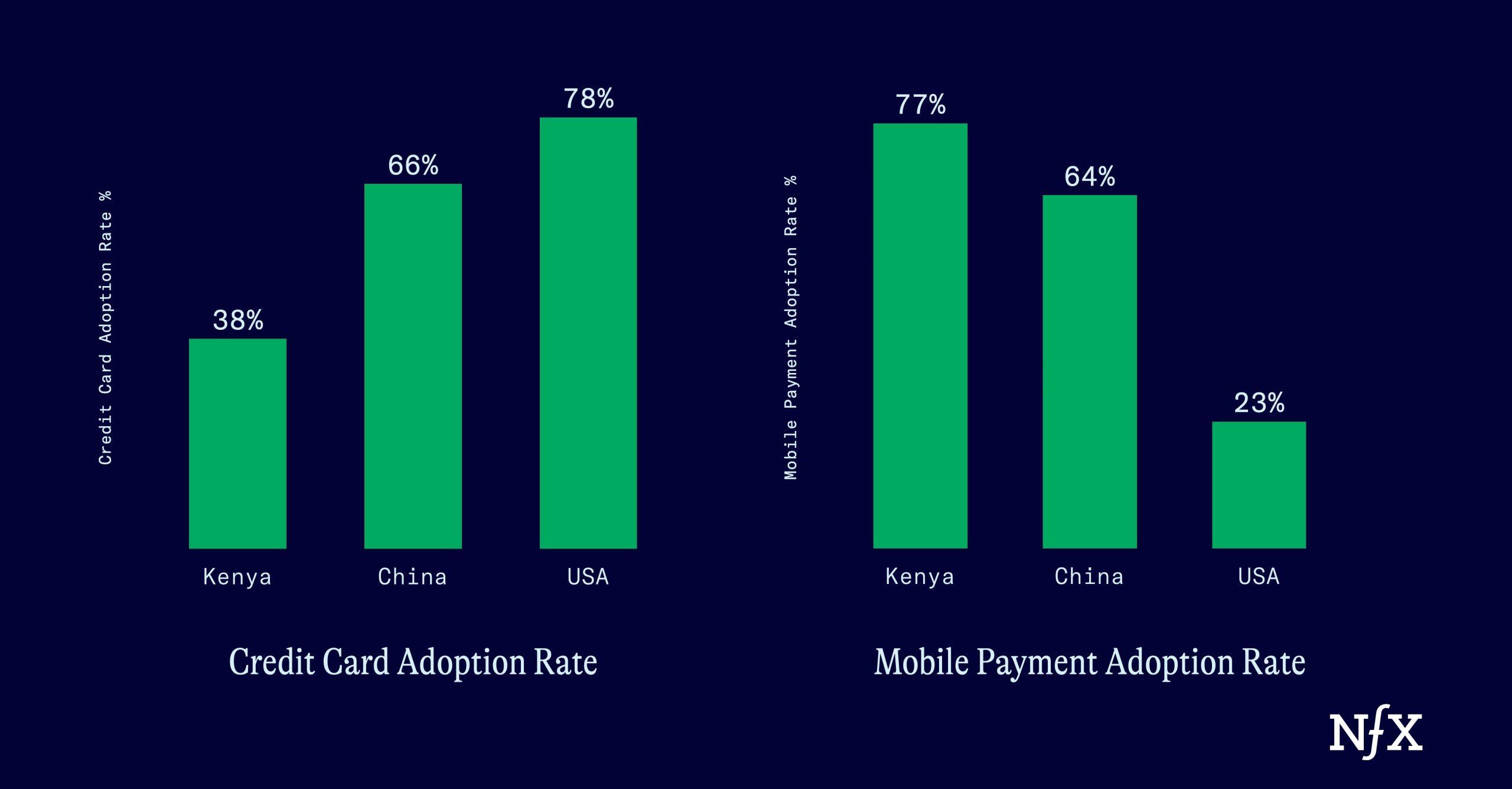 Mobile was several step functions better than what they had – it felt like magic compared to the status quo. Meanwhile, the U.S. had such things as credit cards and digital bank accounts, which were totally adequate, and we had little incentive to close the gap from good to great.