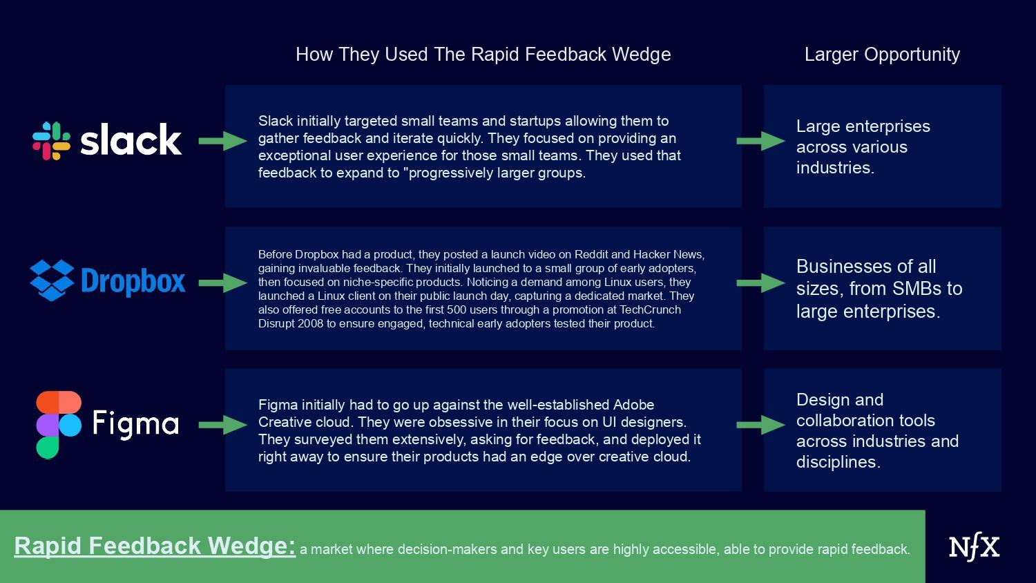 The “rapid feedback wedge” is a market where decision-makers and key users are highly accessible, and therefore able to provide rapid feedback.