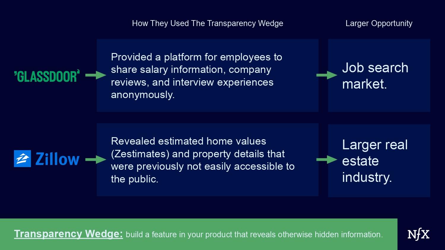 The “transparency wedge” works by building a feature that reveals otherwise hidden information.The key question to ask yourself is: what piece of information do my users crave, but don’t have?