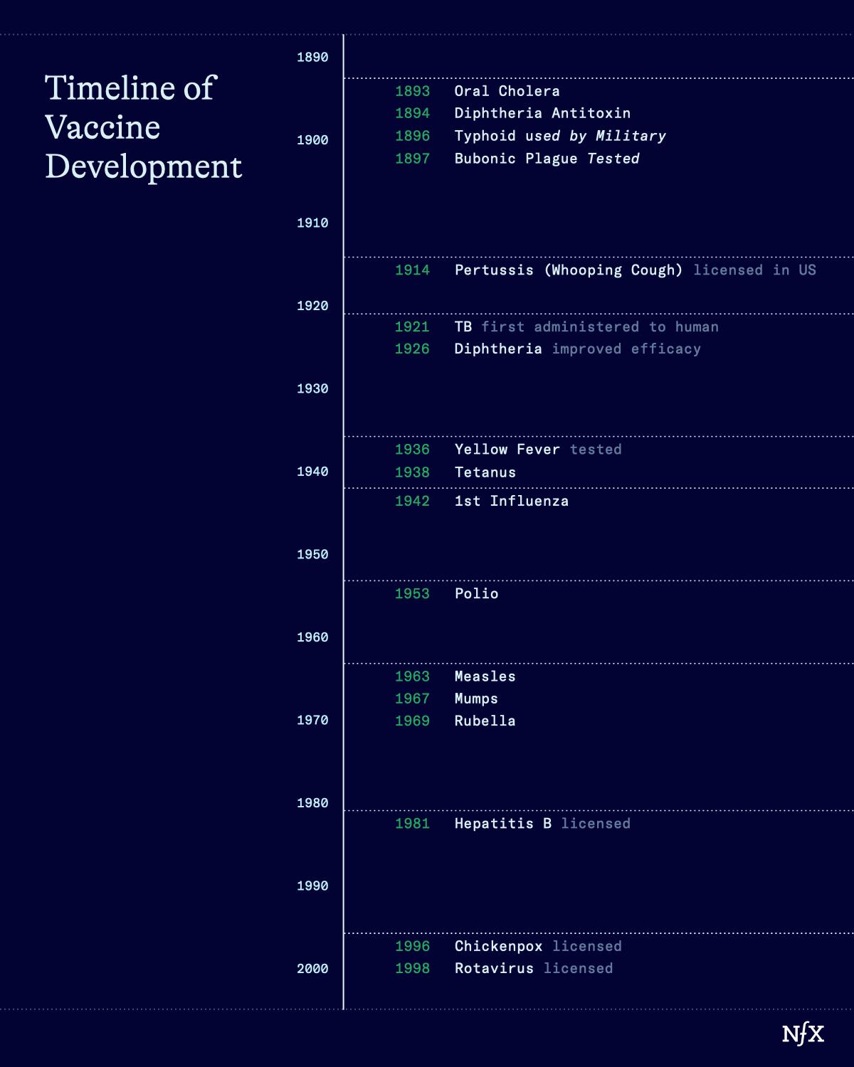 The concept of vaccination had existed for nearly a century before Pasteur, but it truly found its fit in the late 1890s, when the pace of discovery and the scale of deployment took off at the same time.
