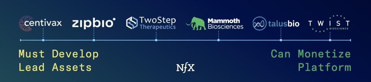 Twist: Twist was uniquely positioned to become a huge business via monetizing their core platform. They achieved a multi $B valuation with hundreds of millions of revenue from a core DNA synthesis platform ( $.07/ per DNA Base pair). They have since used those revenues to move up the value chain towards assets.