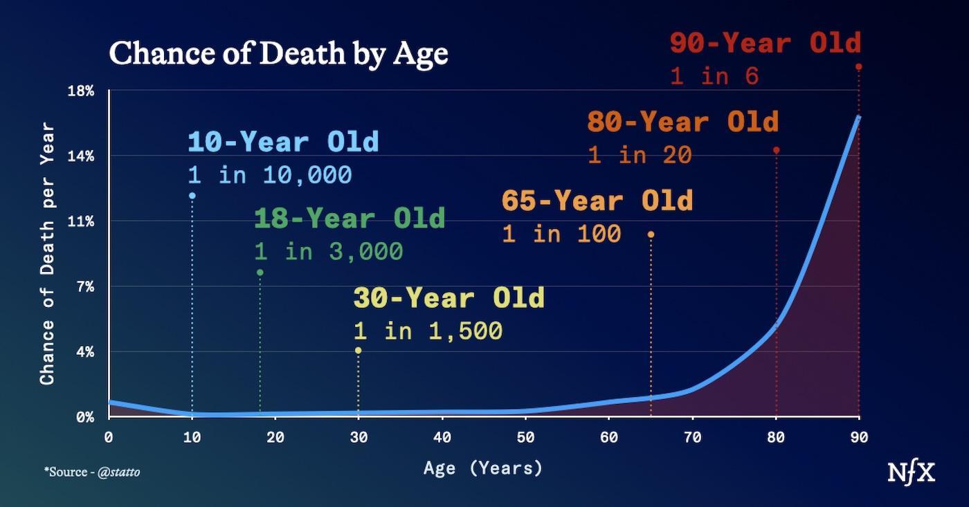 This is a fact of being human: as you grow up, your risk of dying goes up.
