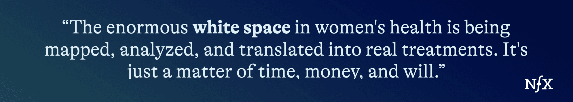 Because the basic research wasn’t happening, women’s health was deemed “mysterious” and economically risky by the mainstream for years. However, this gap created low-hanging fruit for today’s founders.