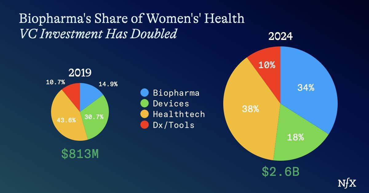 We’re entering a new phase in women’s health. There’s more money, more research, and better technology. As a result, we’re seeing more biotech and biopharmaceuticals, and fewer healthtech approaches and devices.