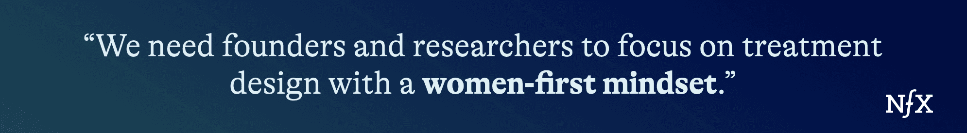 There are many companies that may not see themselves as women’s health companies per se, but are already in this space due to the nature of their patient population. In situations like these, founders and patients will benefit if the company focuses on treatment design with a “customer-first” (i.e. women-first) mindset.