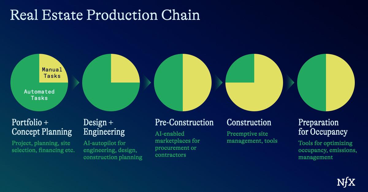 AI has the potential to optimize each link of the real estate production chain, but Founders should beware thinking too small. It can be relatively easy to build a new AI tool that is immediately attractive, but don’t stop there – you need to fully understand the value chain.